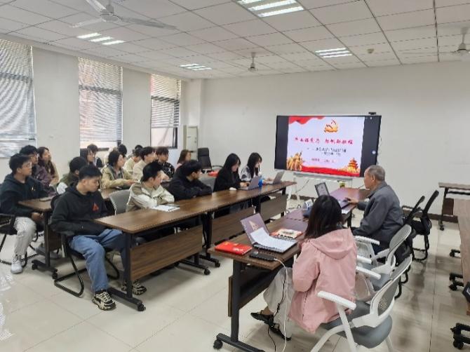为进一步做好对毕业生的思想引领,充分激发毕业生爱校荣校之情和报国成才之志,3月31日,久久小说 邀请退休教师戴明桢为2025届毕业研究生党员讲授 “最后一节党课”,活动由辅导员肖紫峰主持,学院毕业生党员代表参加。