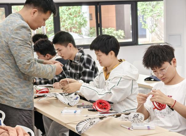 每根竹篾的弯折弧度都在与风对话,每笔青绿的渐变都是与历史共鸣。在张老师的指导下,青年学生纷纷动手尝试制作纸鸢,将传统技艺与青春创意巧妙融合,一幅幅色彩斑斓的纸鸢在他们手中诞生。这些纸鸢不仅承载着千年的文化记忆,更融入了现代青年的创意与梦想。在制作过程中,张老师还与学子们分享了自己多年来的守艺心得,鼓励大家将传统技艺与现代科技相结合,让非遗文化在现代社会中焕发出新的光彩。