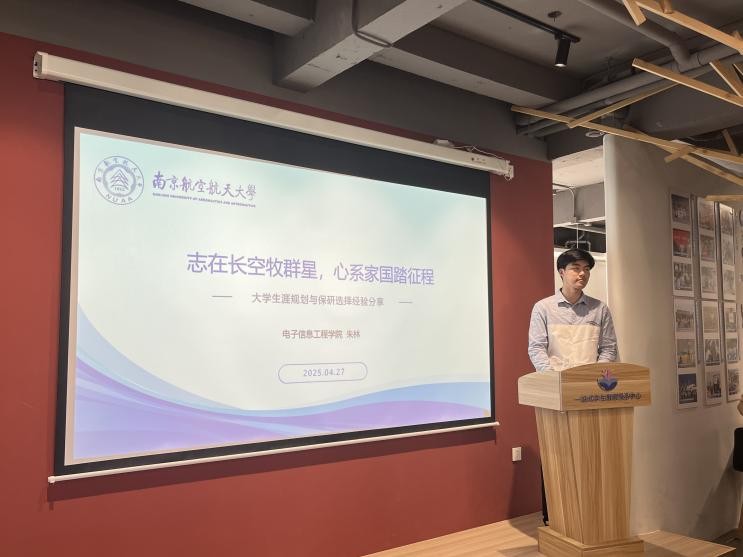 4月27日,“就业星talk”国防研究所升学经验分享会在将军路校区“一站式”中心举办。本次活动由大学生就业创业指导服务中心主办,久久小说 承办。我院2025届本科毕业生朱林以“志在长空牧群星 心系家国踏征程”为主题分享个人生涯规划,20余名本科生参与本次活动。