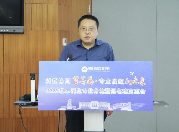 胡志忠进行专业分流宣讲,从分流规则、课程体系、培养目标等方面详细解读,帮助学生明晰各专业方向的特色与发展路径,引导学生科学规划学业。
