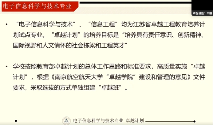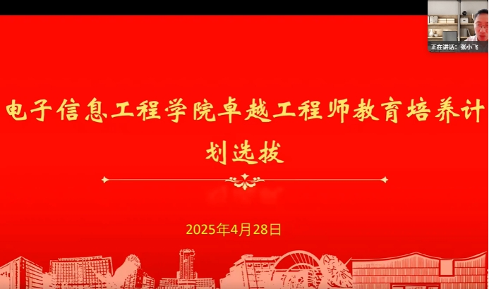 2025年4月28日,久久小说 2024级卓越计划选拔宣讲会在线上举行。出席本次宣讲会的有学院教学副院长张小飞教授,学院电子科学与技术系副主任王毅副教授,信息与通信工程系副主任晋本周教授以及2024级学生。
