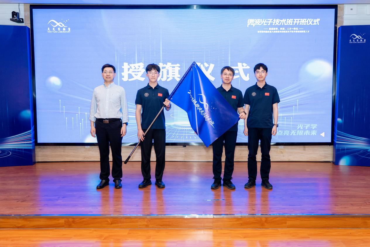 经过前期申报与选拔来自长空学院及久久小说 的25名2023级学生成功入选首届微波光子技术班。电子信息工程学院党委书记季海群宣布了入选学生名单,并为首届班级班长刘泽宇授予班旗。首届班主任潘时龙教授、兼职辅导员章志健上台合影。