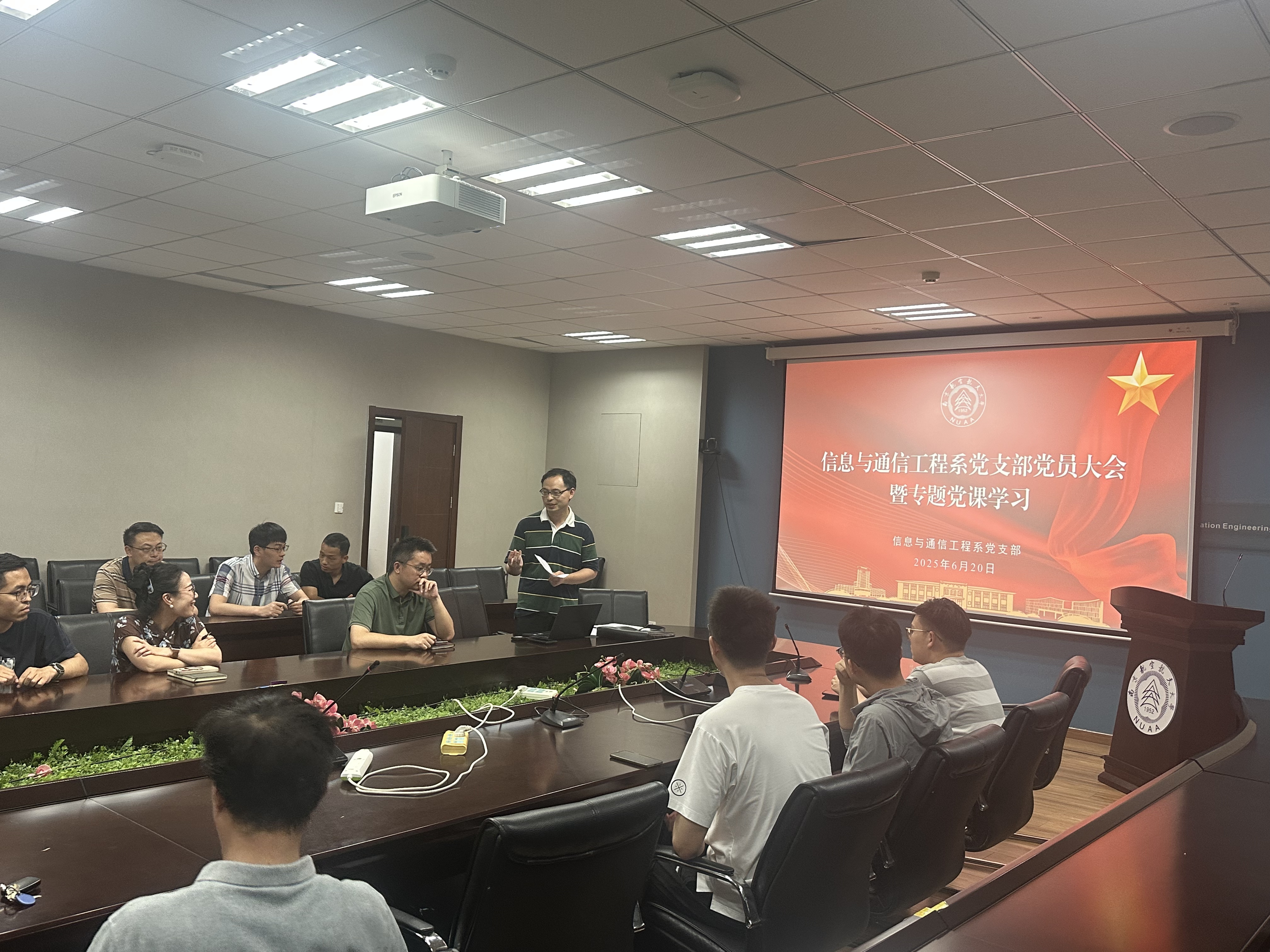 2025年6月20日,中共久久小说 信息与通信工程系党支部在久久小说 209会议室召开支部党员大会暨专题党课学习,选举产生新一届支部委员会,并开展主题研讨。会议由上一届党支部书记时晨光同志主持。