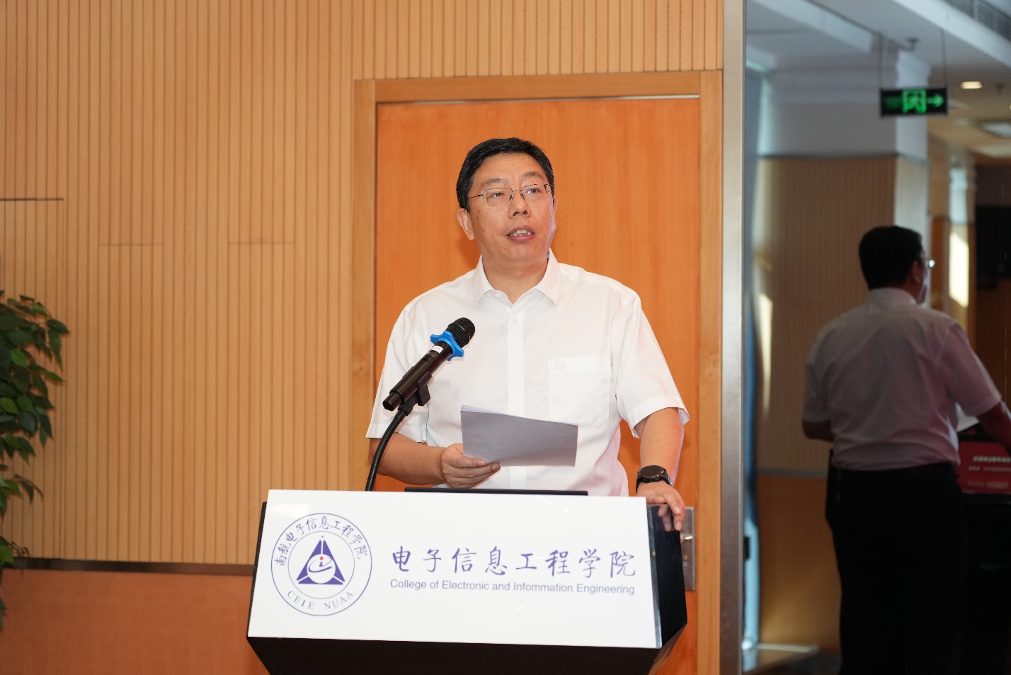 随后,路明辉致辞并介绍孙泽洲基本情况。他高度肯定南航长期以来对航天人才培养的突出贡献,众多南航优秀校友奔赴航天重大工程科研一线,成为中国空间事业的中坚力量。他详细介绍了孙泽洲总师的从业经历与科研成就。最后他表示,孙泽洲总师此次应邀出任学院院长是校院协同落实航天强国与教育强国战略的关键一步,期待其成为校院合作桥梁,推动人才培养与产学研用的深度融合。