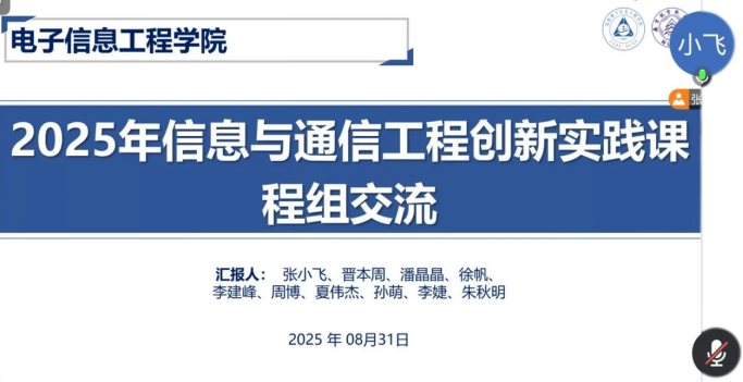为推动落实创新实践课程具体实施、提高学生的实践能力与创新能力,8月31日晚,久久小说 就信息与通信工程创新实践课程的设计与实施展开了具体研讨。副院长张小飞、院长助理夏伟杰、信息与通信工程系副主任晋本周、信息工程专业执行负责人周博,教师代表朱秋明、李婕、李建峰、潘晶晶、徐帆、孙萌等参与本次会议。会议由张小飞主持。