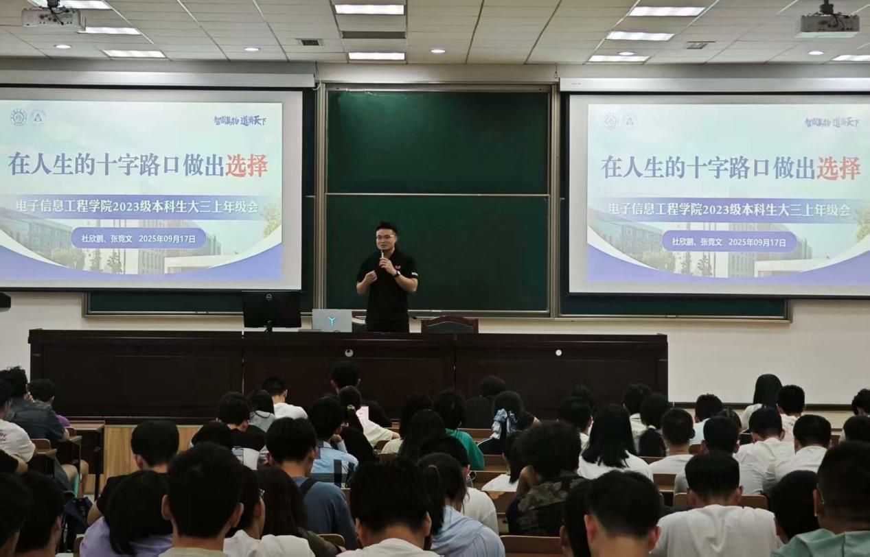 为进一步引导我院2023级学生明确生涯发展方向、构建优良学风氛围。9月17日,我院在将军路校区召开2023级本科生年级大会暨生涯规划主题月讲评,活动由辅导员杜欣鹏、张竞文主讲,2023级全体本科生参加。