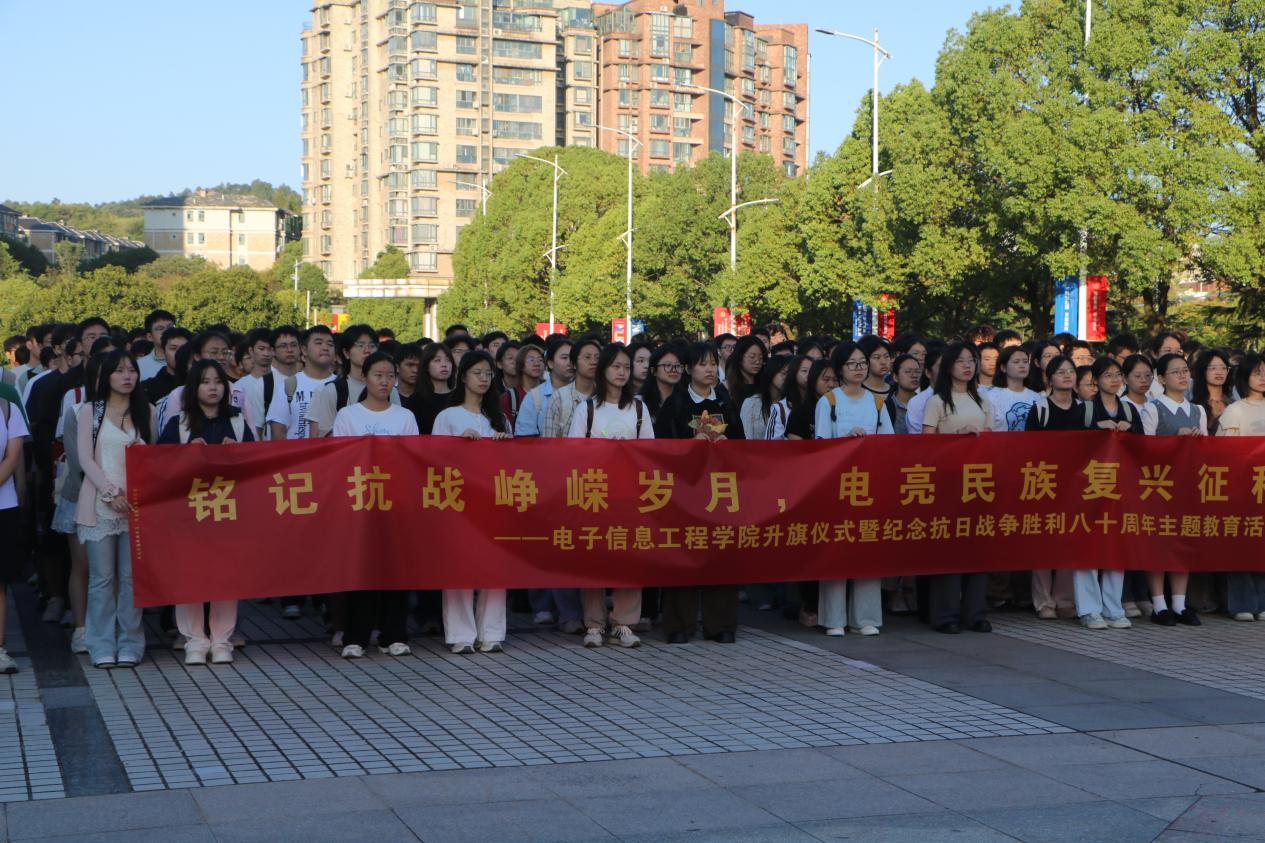 学院辅导员杜欣鹏对本次升旗仪式进行总结。他号召同学们,抗战精神是中华民族宝贵的精神财富,“铭记历史”不仅是缅怀过去,更是为了汲取前进的动力;“电亮征程”需要全体师生以实际行动传承红色基因,点亮电子信息行业发展和科技创新征程。希望同学们能将爱国情、强国志转化为报国行,以青春之我、奋斗之我书写新时代的青春篇章。