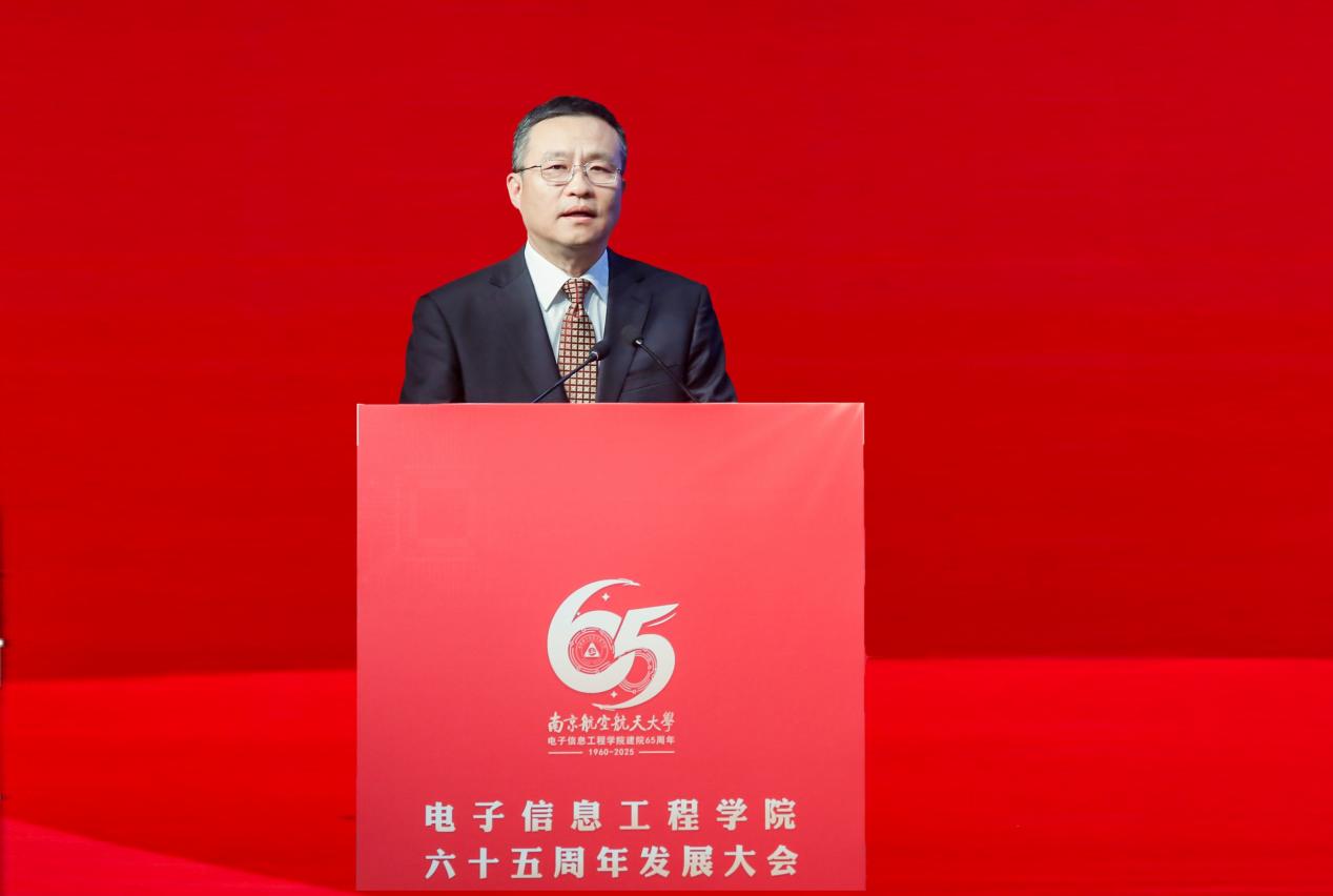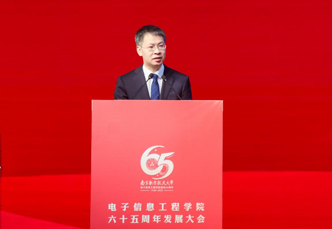 清华大学电子工程系党委书记沈渊作为兄弟院校代表致辞。他对学院65华诞表示热烈祝贺和衷心祝愿,他表示,近年来学院在雷达成像、电磁频谱、卫星通信、微波光子等前沿领域取得了突出成就,期待两学院未来在学科建设、科学研究、人才培养等方面持续开展深度合作,为推动科技进步和社会发展携手做出新的更大贡献。