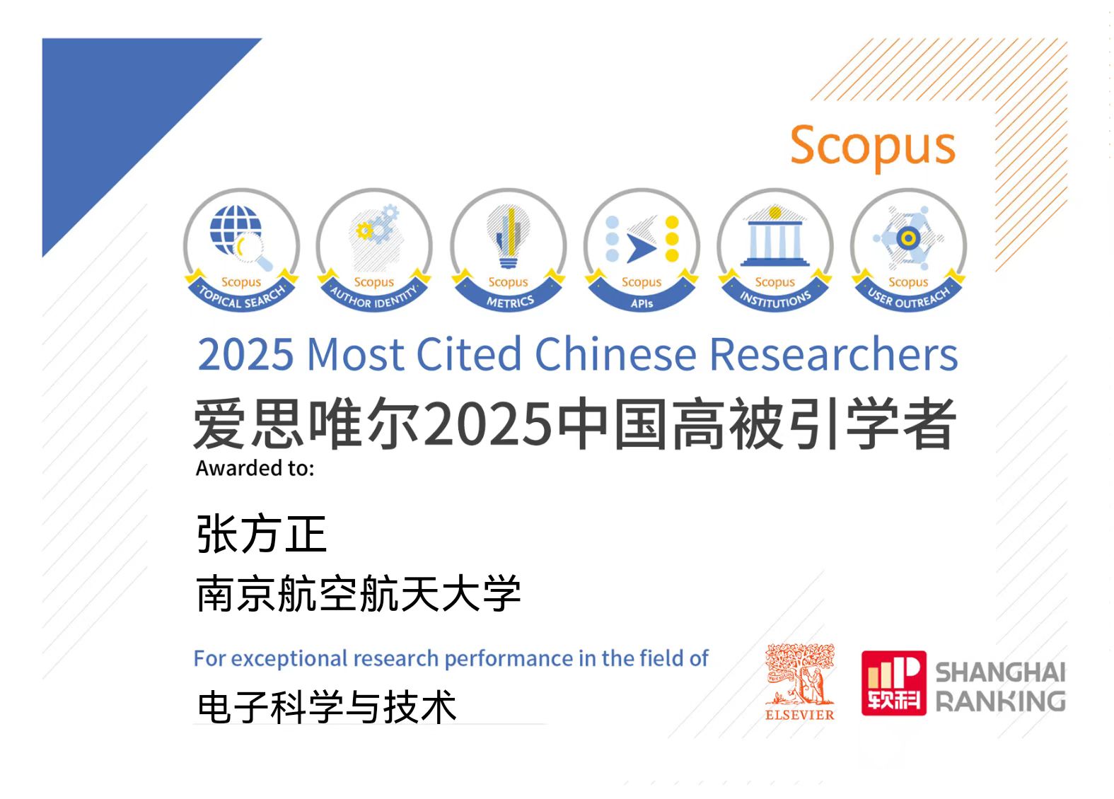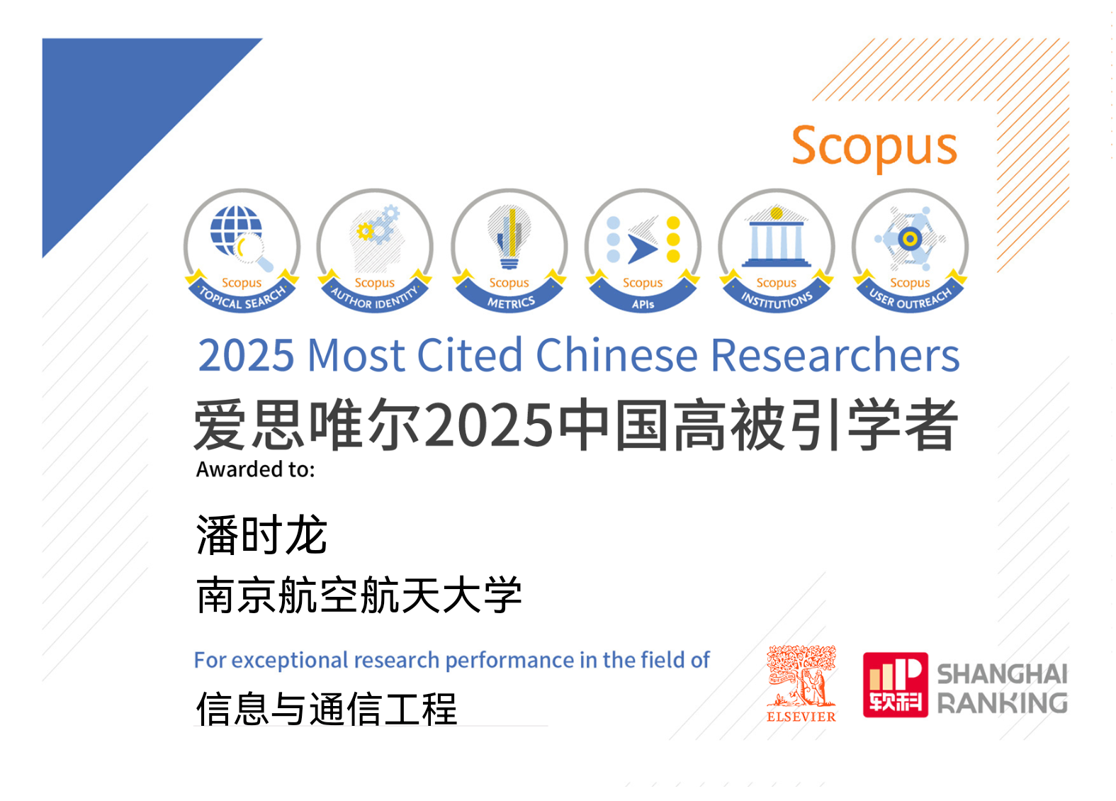 2026年1月30日,爱思唯尔(Elsevier)正式发布2025“中国高被引学者”(Highly Cited Chinese Researchers)榜单,该榜单覆盖了教育部10个学科领域、83个一级学科,介绍了6310名各学科最具全球影响力的中国学者。南京航空航天大学共有32位学者上榜,其中,电子信息工程学院潘时龙、张小飞两位教授继2020年以来连续第六年入选“信息与通信工程”学科领域榜单,张方正教授连续两年入选“电子科学与技术”学科领域榜单。