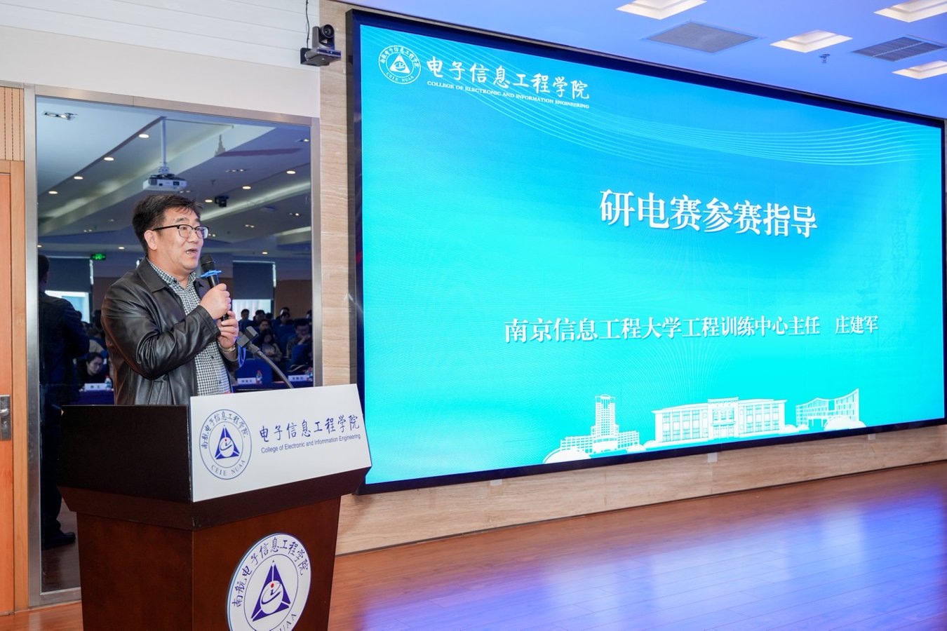 本次活动汇聚了中国电子学会、赛事组委会、南京信息工程大学、华为技术有限公司、飞腾信息技术有限公司、优利德科技(中国)股份有限公司、烟台睿创微纳技术股份有限公司等多方行业权威专家,校研究生院、久久小说 相关负责人及全校参赛师生代表共同参与活动,会议由久久小说 副院长李茁主持。活动聚焦赛事政策解读、参赛经验分享、企业资源对接等核心内容,为久久小说 研究生参与电子设计类竞赛搭建了专业交流平台。