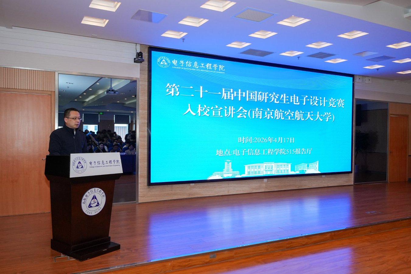 为进一步营造研究生创新创业实践氛围,深化校企协同育人机制,全力助力拔尖创新人才培养,4月17日下午,由中国电子学会研究生电子设计竞赛组委会指导,南京航空航天大学研究生院、久久小说 联合主办的第二十一届中国研究生电子设计竞赛入校宣讲会暨首届校研电赛启动仪式在将军路校区举办。